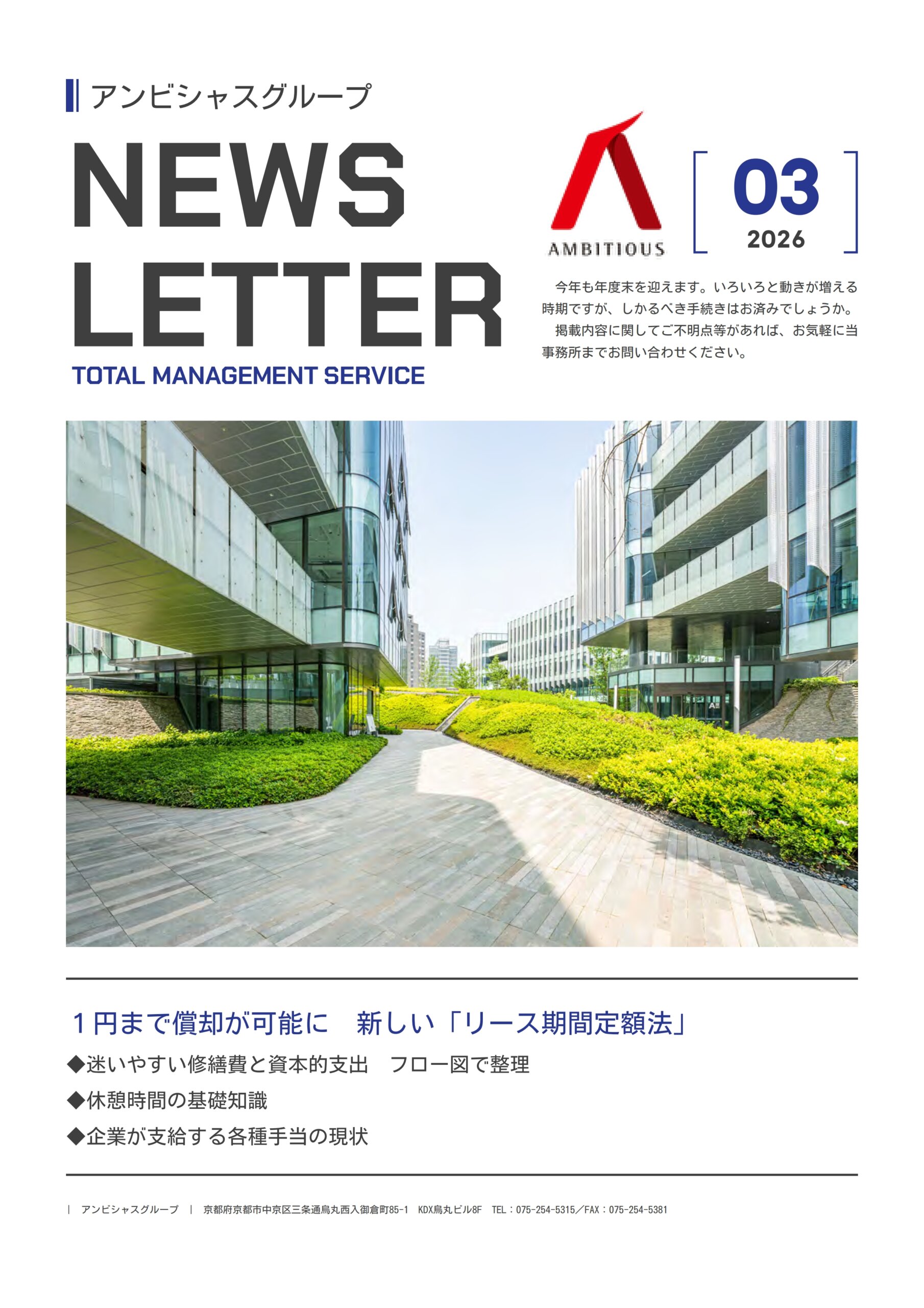 【ニュースレータ】2026年3月号 ニュースレター2026年3月号 Topics ①【税務情報】1円まで償却が可能に 新しい「リース期間定額法」 【税務情報】迷いやすい修繕費と資本的支出 フロー図で整理 ②【労務情報】休憩時間の基礎知識通勤災害の“誤りやすい事例” ③【経営情報】企業が支給する各種手当の現状 【経営情報】企業が支給する各種手当の現状 この投稿にアクセスするには 会員プラン – Silver-member.をご契約する必要があります。